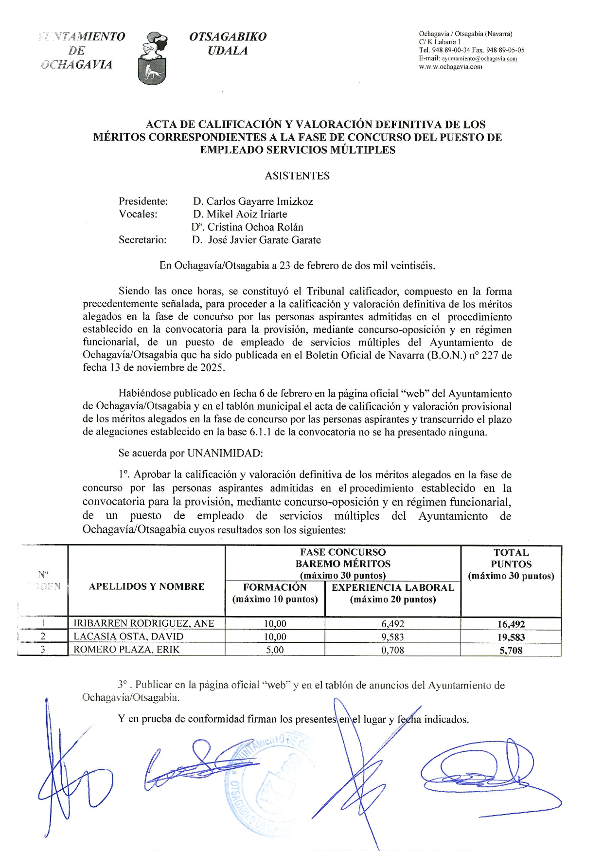 - Acta de calificación y valoración definitiva de los méritos en la fase de concurso del puesto de empleado/a de servicios múltiples