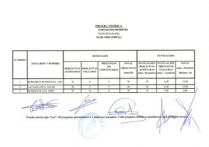 - Puntuación definitiva de la prueba teórica correspondiente a la fase de oposición del puesto de empleado/a de servicios multiples