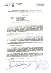 - Puntuación provisional de la prueba teórica de la la fase oposición del puesto de empleado/a de servicios múltiples