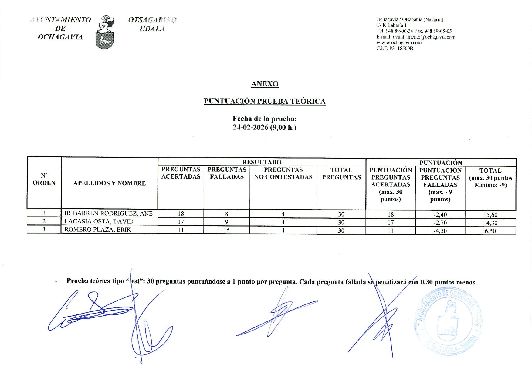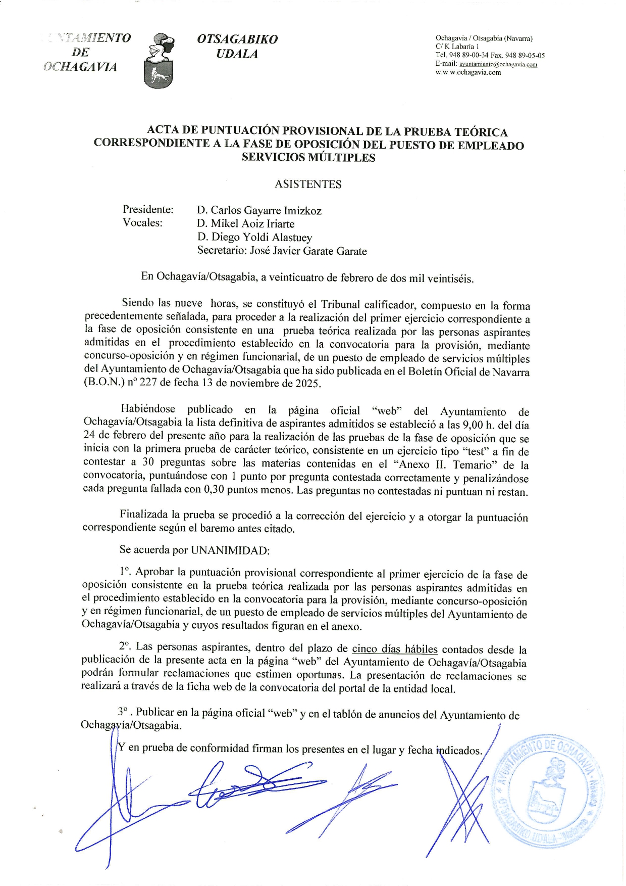 - Puntuación provisional de la prueba teórica de la la fase oposición del puesto de empleado/a de servicios múltiples